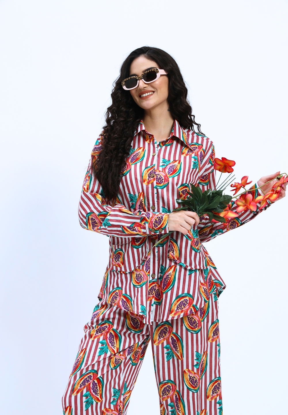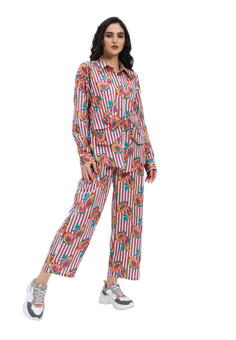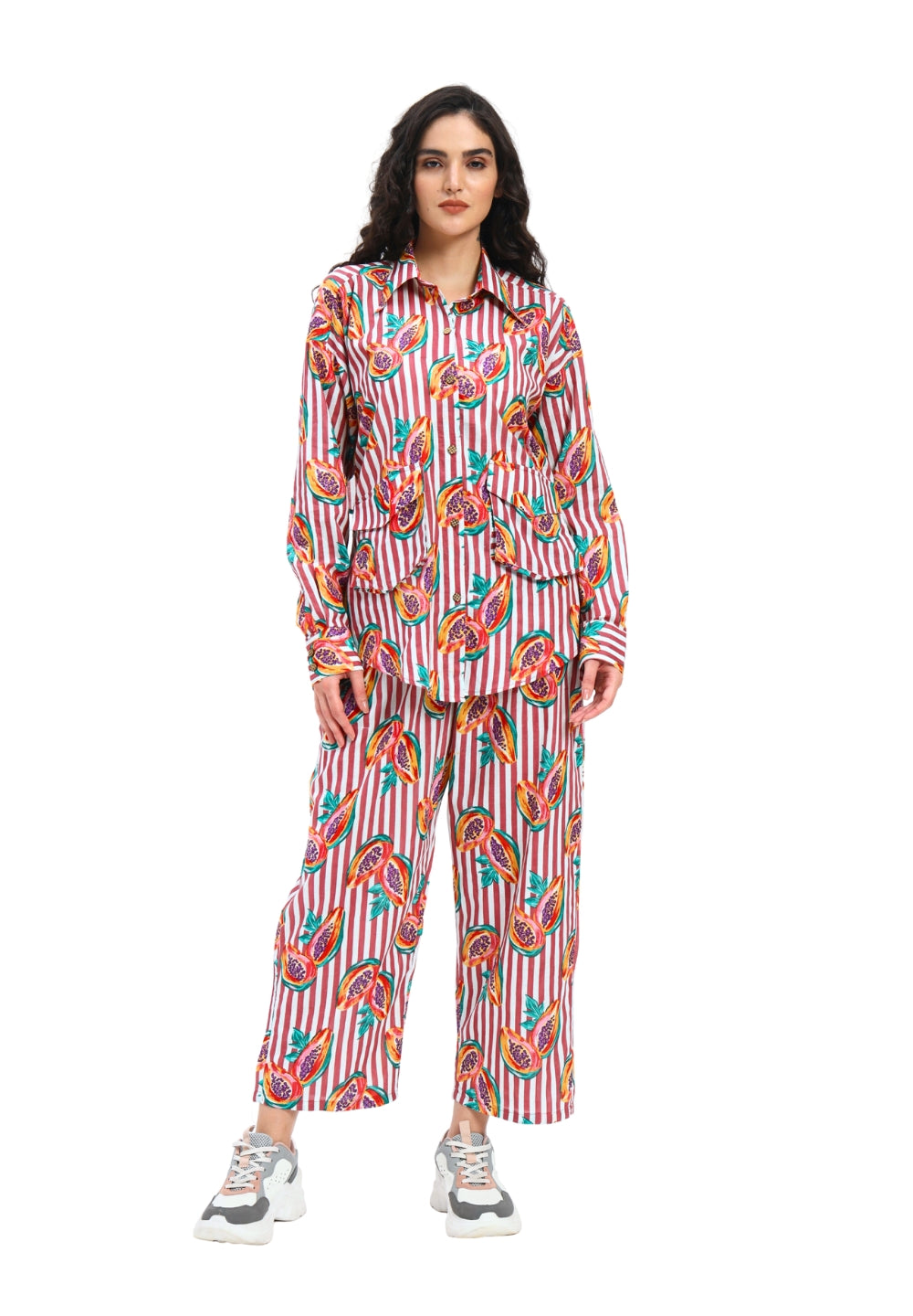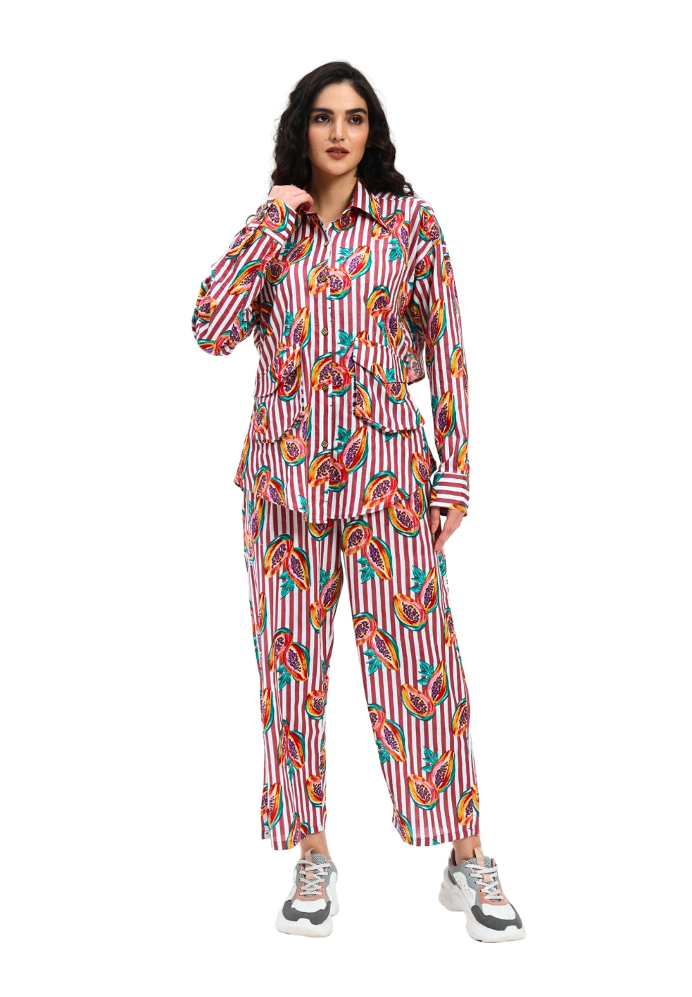 Rustic Red Stripe Papaya Print Coord Set
