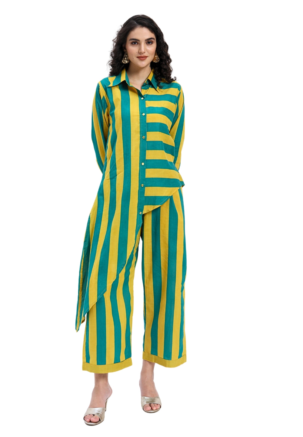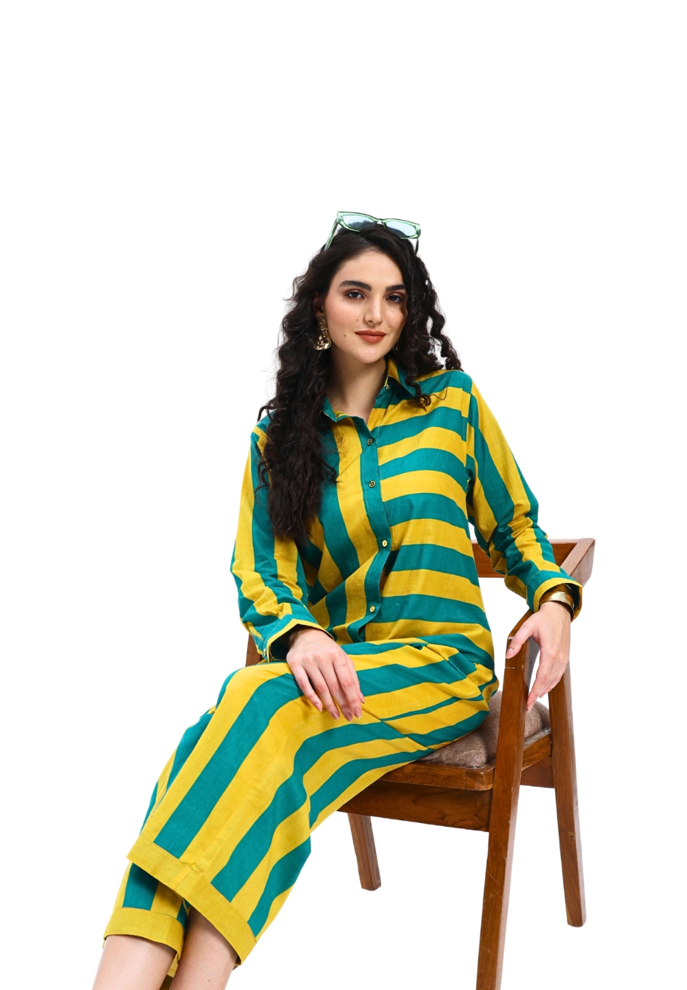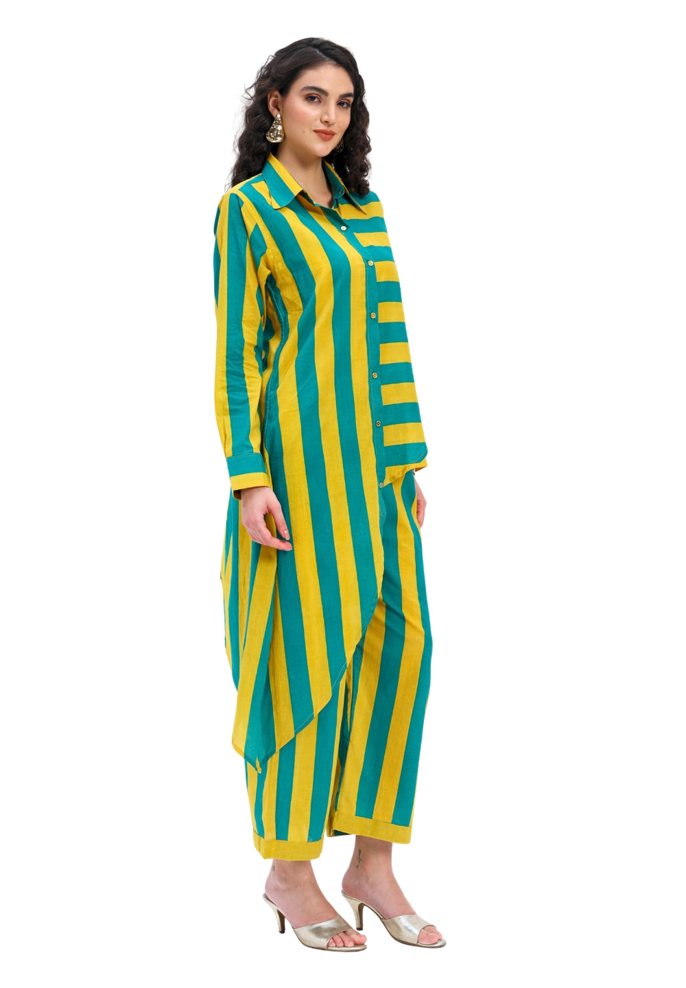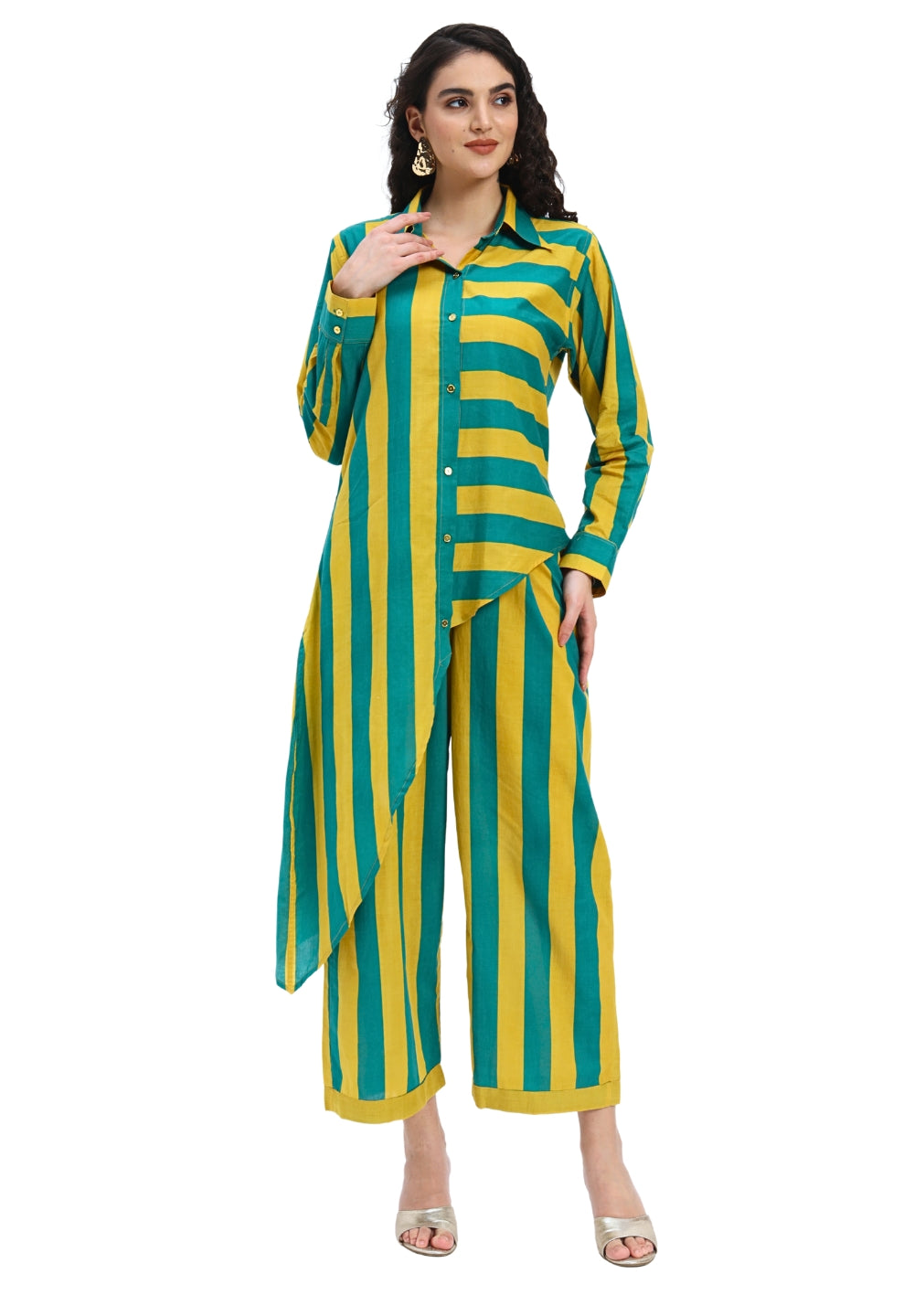 Green Yellow Stripes two piece Coord Set