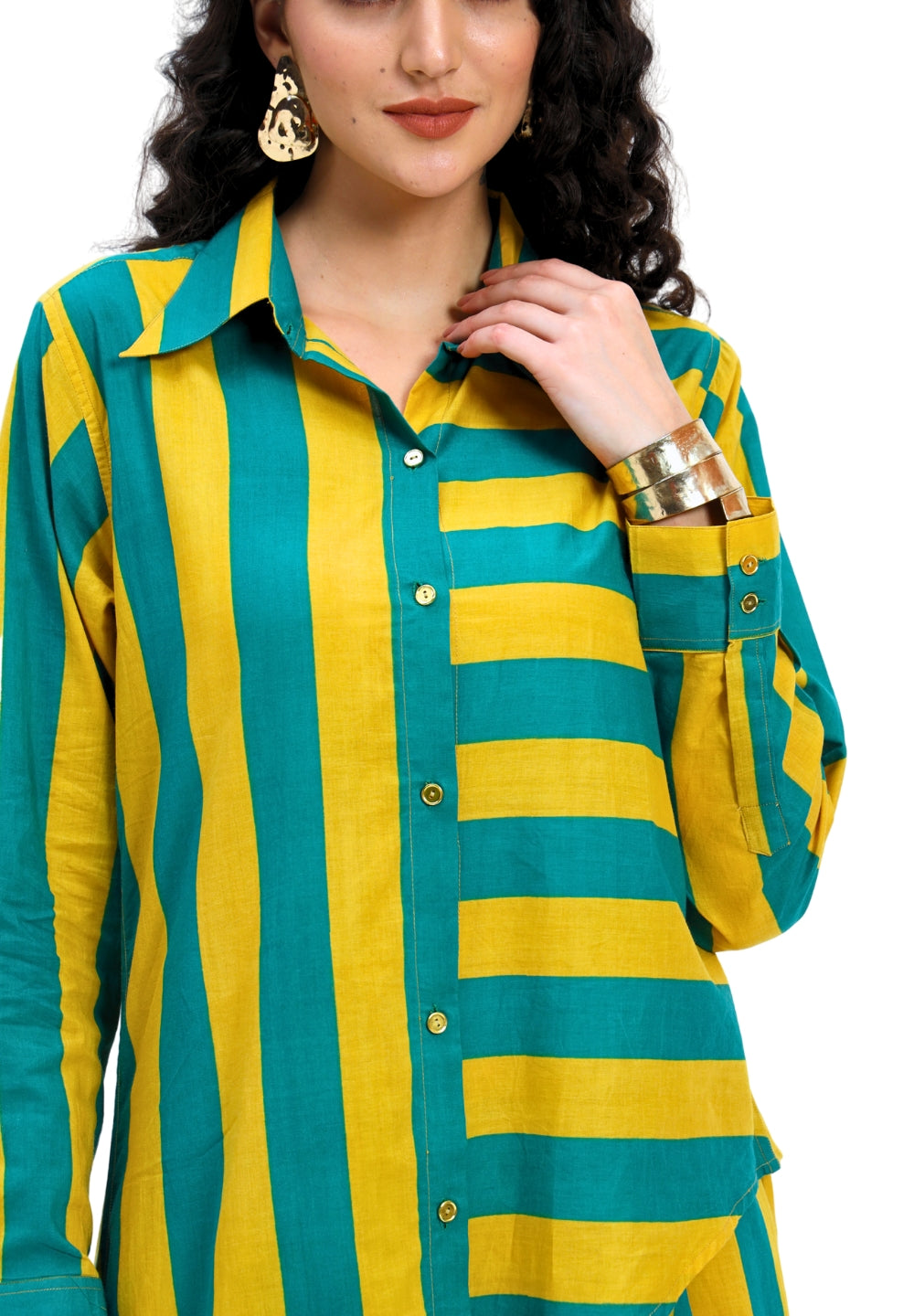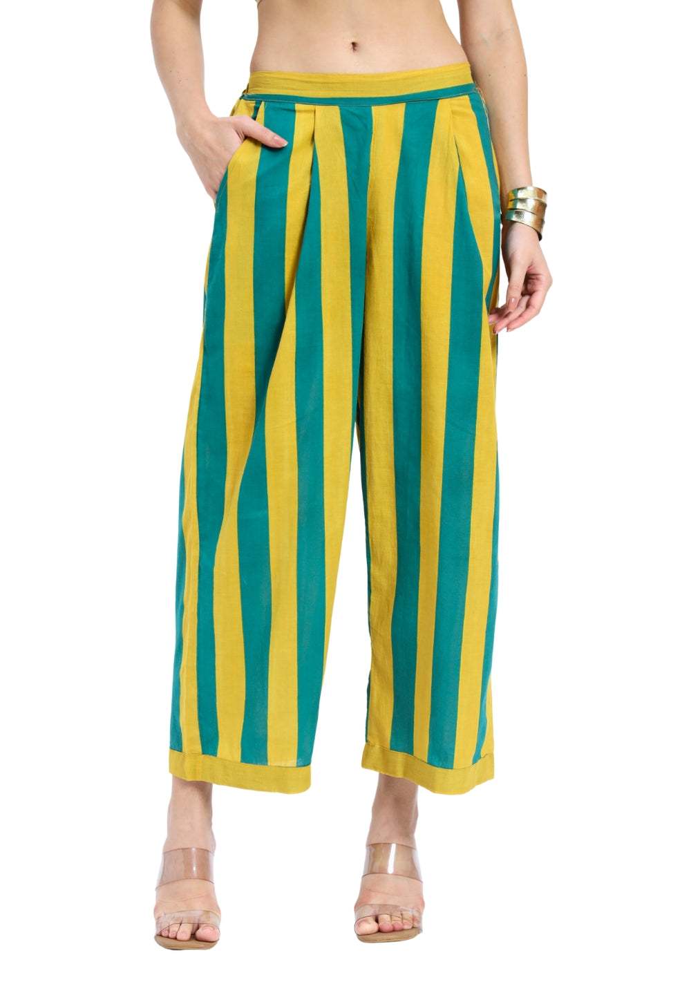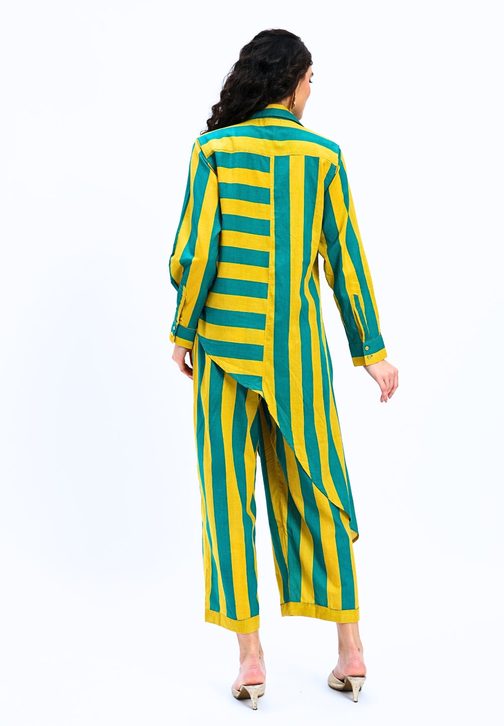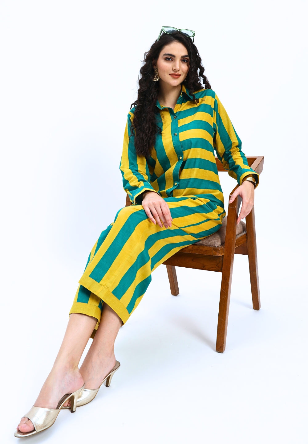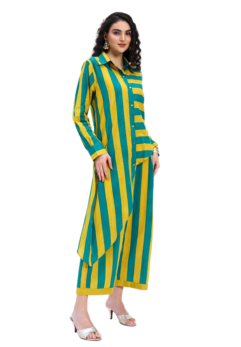 Green Yellow Stripes two piece Coord Set