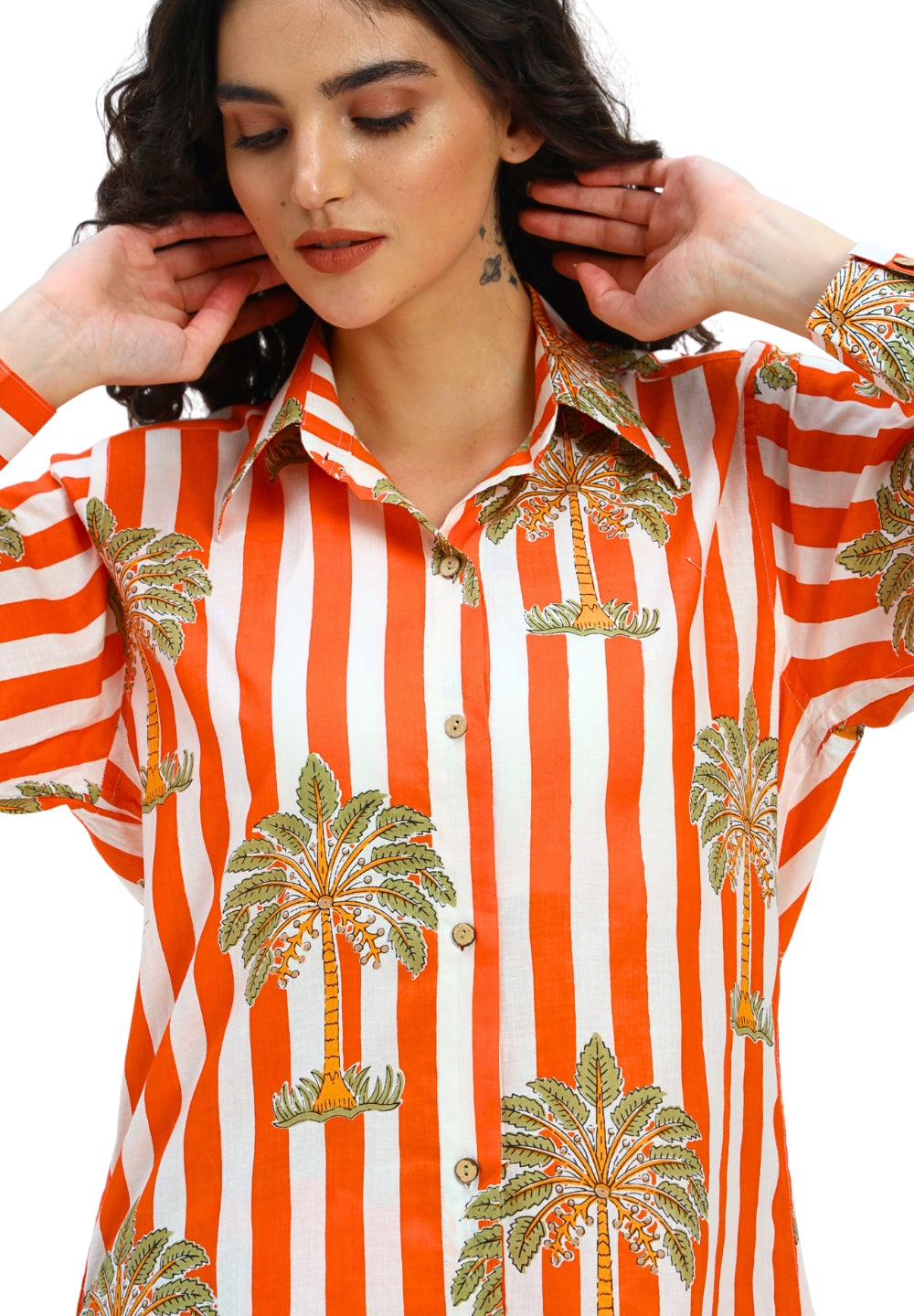 Orange White Stripe Shirt with Short Pant Set
