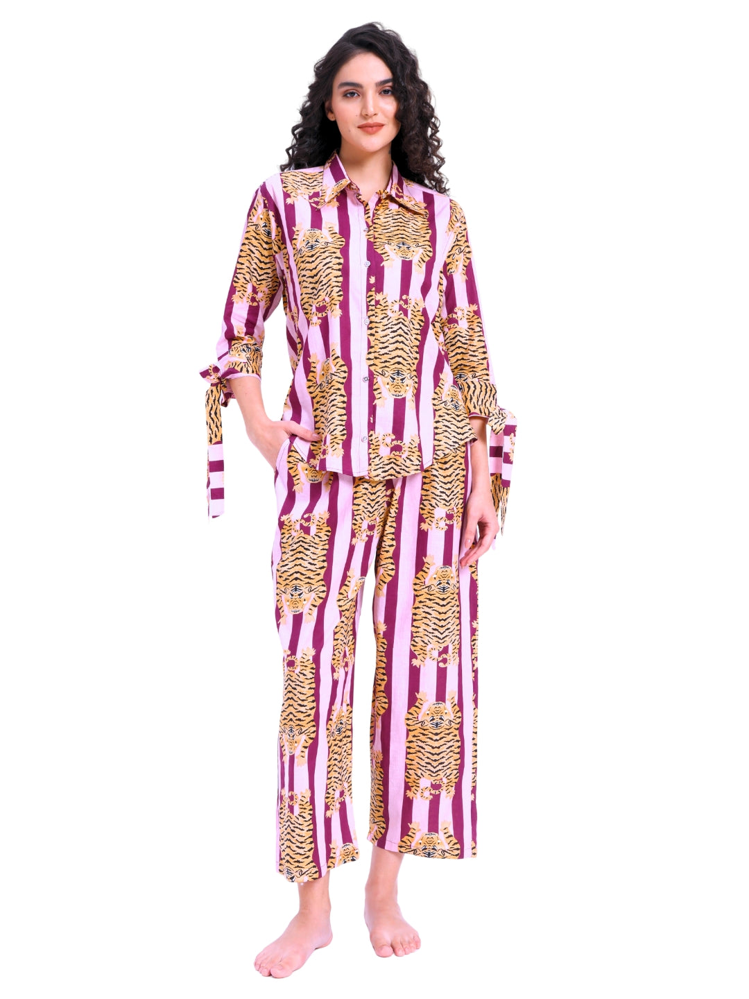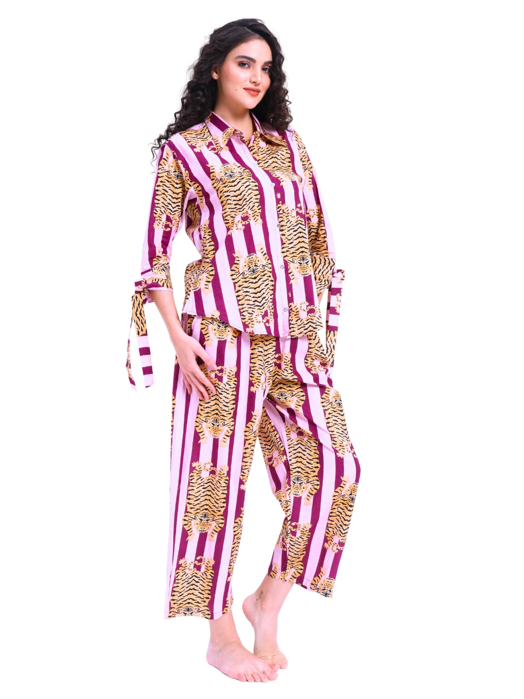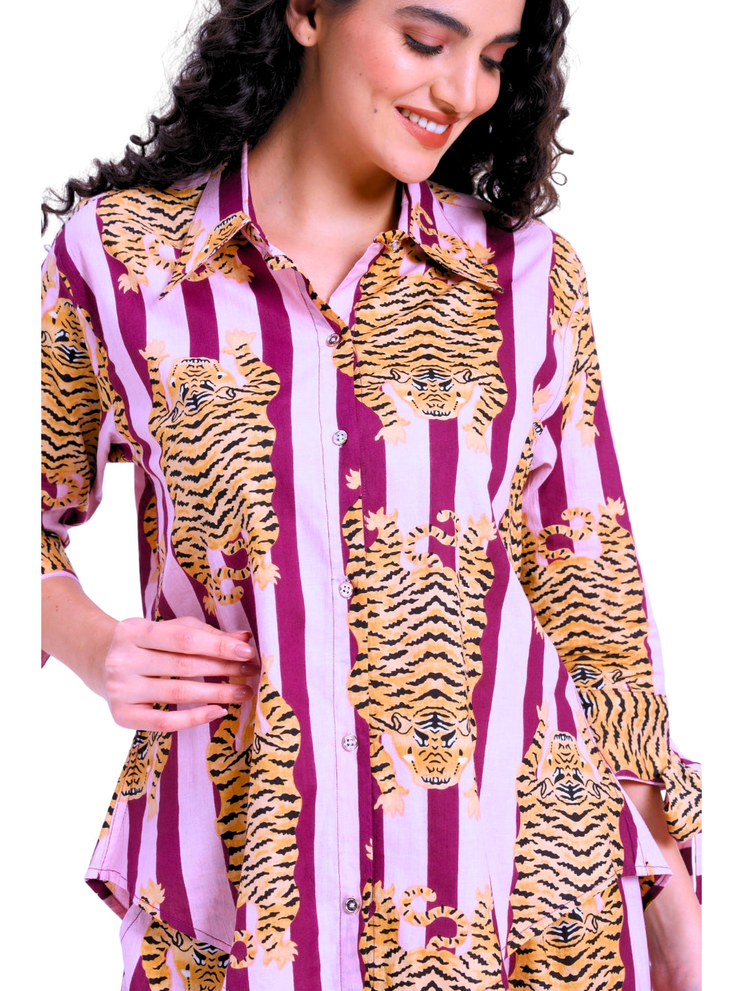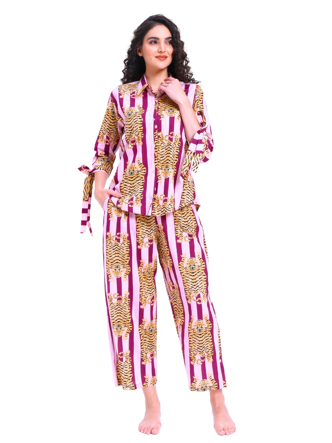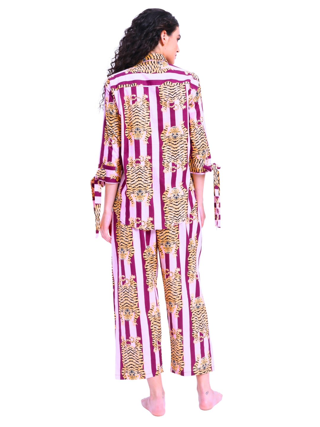 Purple Stripe Tiger Shirt Trouser Coord Set